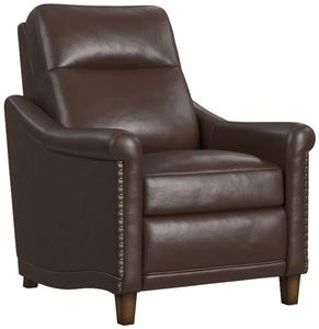 Timeless, traditional details meet today’s modern comfort capabilities with the Elizabeth leather power recliner. Inspired by vintage stationary furniture, this recliner features sloped, petite roll arms, curved side base rails and decorative nailhead trim reminiscent of a bygone era. A high-divide back, extended footrest and powered headrest.Read More