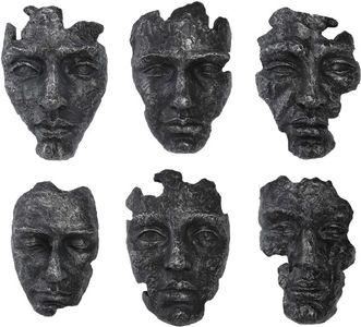 Inspired by works from modern art galleries, these masks are handcrafted with a sculpted look in a patinated steel gray finish with noticeable metallic details and texture. It adds aesthetic design to your living room.Read More