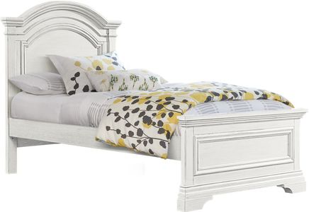 This bed features a classic panel design with a soft brushed white finish, offering timeless elegance, sturdy construction, and a cozy, comfortable sleeping space ideal for a growing child's bedroom.Read More